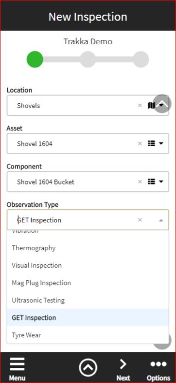 | SELECT THE OBSERVATION TYPE Use the drop down to select the Observation Type you are collecting data for. It is possible to perform multiple inspections and you will come back to this screen for any other inspections performed on this asset Observation types available for all components • Filter Inspection – Inspection of filter media. • Visual Inspection – Any type of visual inspection, not specifically for filter media or magnetic plugs. • Mag Plug Inspection – Inspection of magnetic plugs. Other Observation types could be available in this dropdown, it depends what Observation Types have been activated for the site. If you don’t see the Observation type you need, contact your Trakka administrator. Examples of other Observation types and their uses; • GET Inspection – Inspection of ground engaging tools such as dozer blades, bucket teeth, undercarriages etc • Thermography – Any type of inspection that captures temperature readings • Ultrasonic Testing – any inspections using ultrasonic measurement tools, such as truck tray/bed thickness, liner thickness etc • Tyre Wear – measurement of tyre tread depth/thickness Trakka can be setup to accept any time series data, and Observation types can be used to group that data. To make an Indicator available in the app for data collection, ensure the “Allow Inspection” checkbox is ON in Trakka. This can be located in Profiles & Lists > Indicators > Indicator detail form |