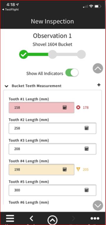 CAPTURE ANY DATA MEASUREMENTS This next screen is for entering the Inspection measurement details and contextual information for this Observation. Show All Indicators – This toggle will change the list of Indicators that are displayed. • OFF – only indicators for that observation type and the component profile will be listed. This helps focus the list to what is usually collected for that type of component • ON – all indicators on the site for that observation type will be listed. This is useful when thinking about adding a new indicator, you can check the list of existing indicators to see if it already exists. Indicator value field – there are a number of features of the field that measurements are entered for each indicator; • Last Value - If the device is online (connected to internet) then the app will retrieve the most recent value for each indicator listed and display in faded italic font. This helps the inspector see what the last collected value was. Once you start typing the value disappears • Trakka alerts – Trakka alerts are available on the device and each entered value is compared to those alerts and if a limit is reached, the field will change color and the alert value will be shown to the right of the field Indicator Groups – each list of Indicators is stored within an Indicator Group (same concept as Trakka). These groups can be expanded or closed using the control to the left of the indicator group name. Tap the + icon to the right of the indicator group name to add a New indicator to that group. This will open 2 new fields that allow the user to add a New indicator for the inspection, that will be sent to Trakka when submitted. • Indicator Name – this is the name for the Indicator as it will be displayed in Trakka and the App in the future. There is validation logic in the background to try and avoid duplicating existing Indicator names • Indicator Unit – this is a dropdown list of existing Indicator units from Trakka. ©2022 DINGO Software Pty. Ltd. |